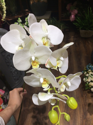 | / silk orchids, such as this real touch phalaenopsis orchid spray in cream green, are perfect for elegant or tropical weddings. More photoes of silk flowers,silk trees and plants please visit here s996.photobucket.com/user/zhang_micky/libraryor contact us by goodluckzhang2010. These real touch artificial silk orchids are available in white, and have a stem with 8 flowers and 4 buds. Flowers and succulent arrangement looks real and of high quality, but the base is a bit disappointing and looks nothing like the photos. 11 heads real touch latex flower orchid artificial wedding hometable floral deco.